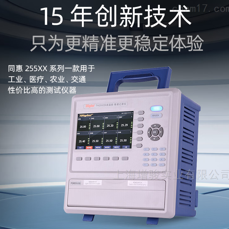 TH2552多路温度记录仪7英寸全触控彩色显示屏,标配8通道最多可扩展至64CH,全隔离万能输入,多种信号采集。