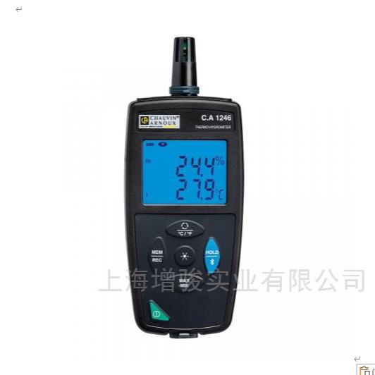 法国 CA1246高精度温湿度计是一款三合一的温度度测量计,温度、湿度、露点.可测量大气环境中的温湿度,应用范围广.相对湿度:3.0%至98.0%RH,环境温度: - 10.0°C至+60.0°C,露点温度: - 20.0°Ctd +60°Ctd。最小和最大值显示自动计算,自动断电,可调背光,IP54防水防尘功能,可测量大气环境中的温湿度,。