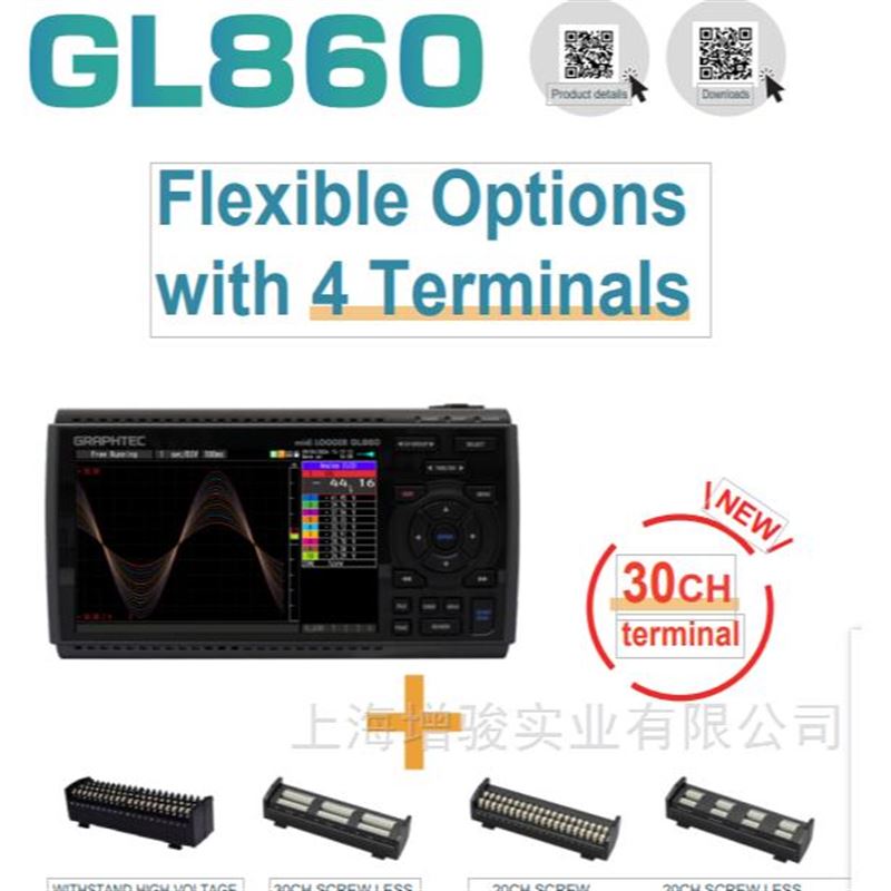 日本图技GRAPHTEC GL860系列数据记录仪可对多种物理信号进行测量,比如电流、温度、湿度、脉冲、逻辑、压力等。每个模拟输入通道都相互独立且电气隔离,这种设计提高了测量的准确性和稳定性,允许在复杂的电气环境下进行精确测量。标配8G的内置,8的内置Flash闪存。机器外接SD卡最大还可以32G存储空间。通过设定接口和信号类型,可轻松操作。新增远程操作、警报历史查看和强大通道运算功能。内存不足时自动删除旧文件。无线LAN单元可选访问点或站点模式,但使用时不能装载SD卡。CSV格式保存时,仅在高速采样时可使用备份功能。
