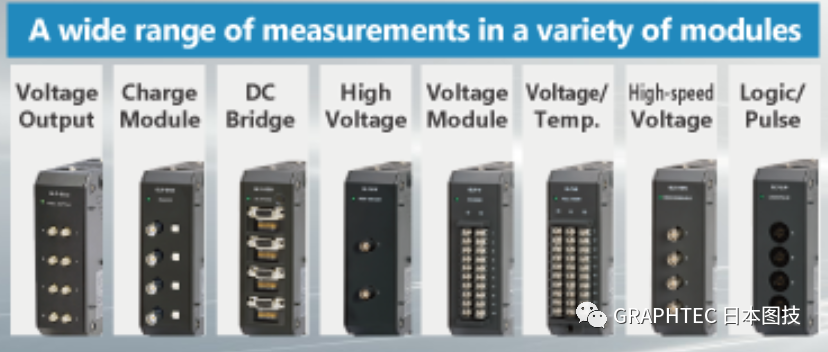 同时GL7000也有各类不同的模块可以选择,比如温湿度,加速度,应变,高压,逻辑脉冲等模块,可以根据客户的不同需求搭载不同模块进行多样化的测试。