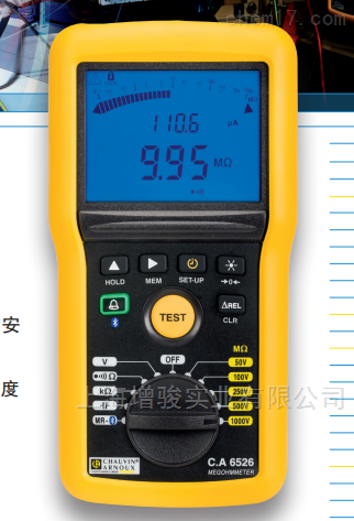 法国CA6524/CA6526/CA6532 绝缘电阻测试仪测试电压范围为 10 V 到 1,000 V / 200 GΩ● 模式:手动、锁定、计时器和 PI / DAR 比值● 目视通过 / 失败:红 / 绿● 具有主动保护的 200 mA / 20 mA 连续性,无需安装熔断器。