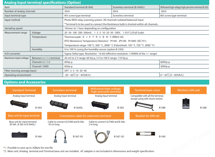GLT400-564SL可扩展至200ch,可以增加传感器进行电压/温度/湿度/脉冲/逻辑的多元输入。采用快插式模块,方便快捷。还可以在超低温环境下使用。拥有7英寸的液晶宽屏清晰显示波形,具有警报输出的功能,USB驱动模式,导航功能;支持10ms间隔采样,支持大容量SD存储卡进行可信高的长时间的测量。