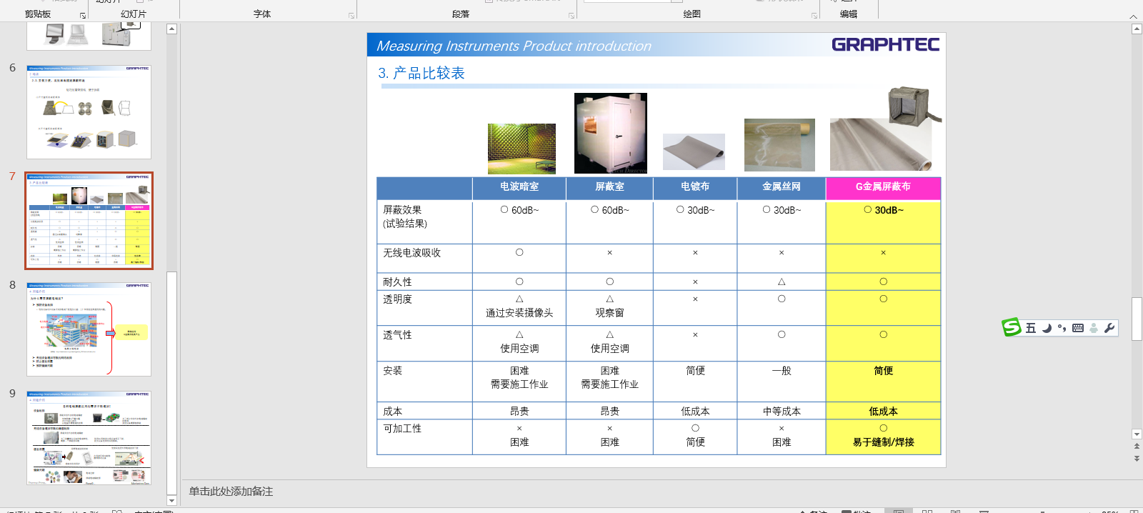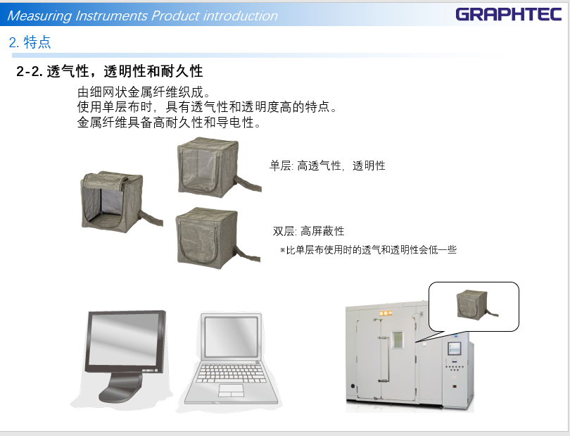 如今阻隔家用电器、个人电脑、手机、电动汽车等设备产生的电磁波成为一个重要问题。日本图技电磁屏蔽柜针对家用电器、个人电脑、手机、电动汽车等设备产生设备在运行中受外界电磁波的干扰,确保其正常工作,为了检查设备故障的原因并加以预防,人们越来越需要创造一种电磁屏蔽的环境。因此,GRAPHTEC提出了一种比无线电电波暗室和屏蔽室更容易建立屏蔽环境的方法。具有体积小、安装方便、使用灵活的特点,非常适合在那些不适宜安装电磁屏蔽室又需要对信息设备提供保护的场使用合使用。